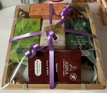 Les savons sont vendus en corbeille de 5 savons au lait d’Ânesse Bio: Huile de Tea-